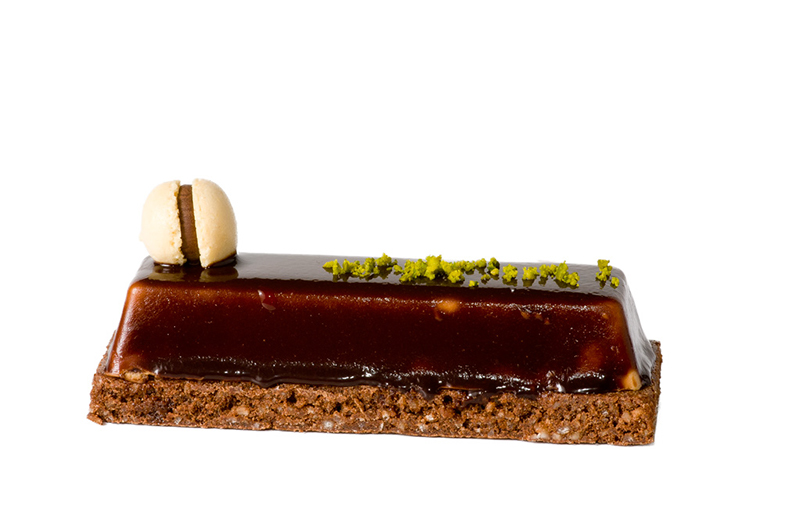 Mousse de avellana bañado con chocolate y base de bizcocho financier de almendra y chocolate.Producto congelado elaborado mediante procesos artesanales, peso aproximado 90 gr./unidad.
